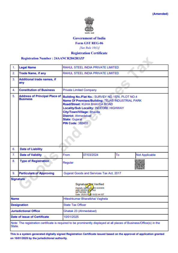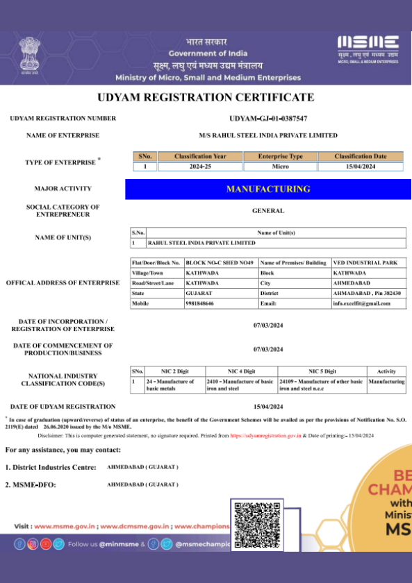 Rahul Steel India Pvt. Ltd. A reputed company in the steel industry, known for its dedication to high-quality steel products, structure Fabrication, and turnkey projects.